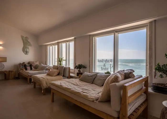 Com solário, massagem e salão compartilhado, o hotel Sandhi House - Yoga & Wellness Ericeira de 3 estrelas goza de uma localização em frente à praia, a 13 minutos a pé da Praia de São Sebastião. Localizado a uma distância aproximada de 2 km da Praia da Foz do Lizandro, este hotel à beira-mar dispõe de 15 quartos com vista para o mar.